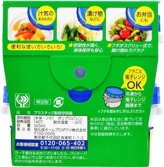 旭化成 ジップロック スクリューロック 300ml 2個入 1パック(ご注文単位1パック)【直送品】