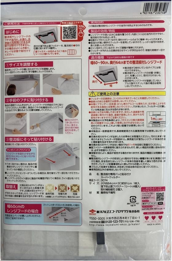 フィルたん 整流板付専用 パッと貼るだけスーパーフィルター 1枚 1袋(ご注文単位1袋)【直送品】