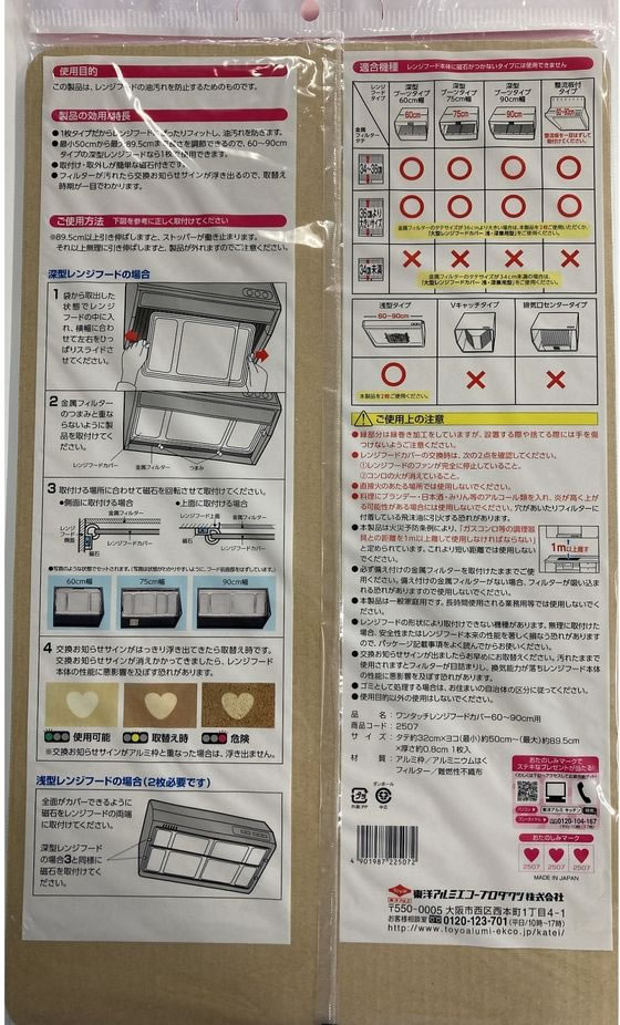 東洋アルミ スーパーワンタッチレンジフードカバーでか 60~90cm用 1枚(ご注文単位1枚)【直送品】