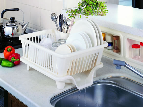 サンコープラスチック 皿立て水切りかご流 ヨコ型 パールホワイト No.2 1個(ご注文単位1個)【直送品】