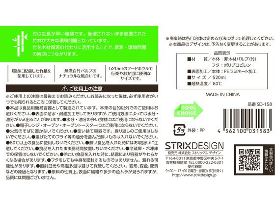 ストリックスデザイン バンブーペーパー フタ付 フードボウル 520ml 7個 1パック(ご注文単位1パック)【直送品】