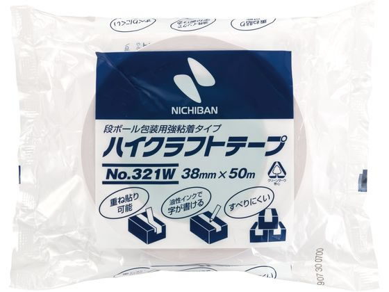 ニチバン ハイクラフトテープ No.321 38mm×50m 白 321W-38 1巻(ご注文単位1巻)【直送品】