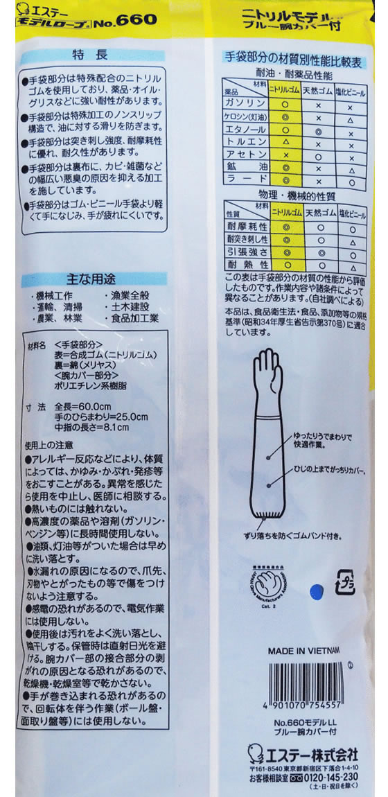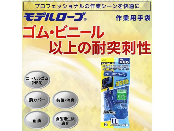 エステー モデルローブ No660 ニトリルモデル ブルー 腕カバー付 LL 1双(ご注文単位1双)【直送品】