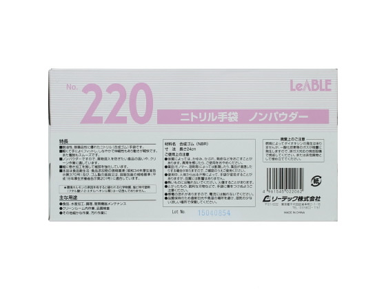 リーブル ニトリル手袋 ノンパウダー ホワイト L 100枚 220-L 1箱(ご注文単位1箱)【直送品】