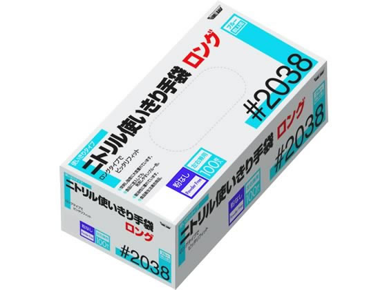 川西工業 ニトリル使いきり手袋ロング 粉なし ブルー SS 100枚 1箱(ご注文単位1箱)【直送品】