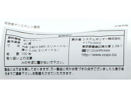 寸法/ヨコ160×タテ235(ポケット部全長220)mm1パック=100枚入
