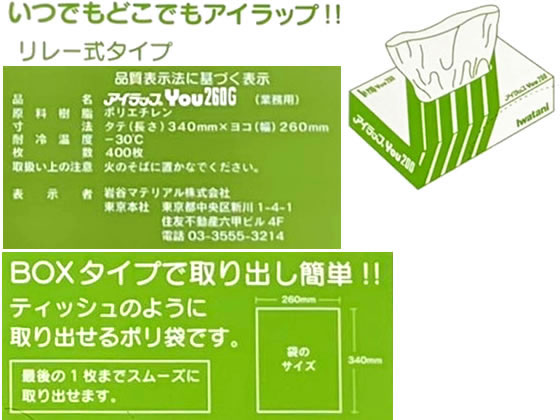 岩谷マテリアル アイラップYOU260G 縦340×横260×マチ50mm 400枚 1個(ご注文単位1個)【直送品】