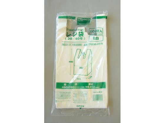 TRUSCO レジ袋 30/40号 480×390(255)mm 乳白 100枚 1袋(ご注文単位1袋)【直送品】