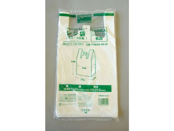 TRUSCO レジ袋 45/45号 530×440(295)mm 乳白 100枚 1袋(ご注文単位1袋)【直送品】