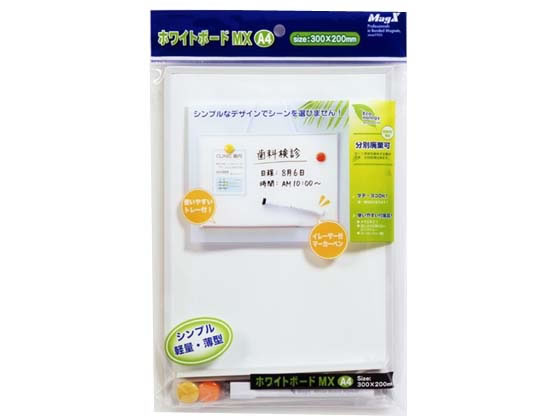 マグエックス ホワイトボードMX A4サイズ(200×300mm) MXWH-A4 1枚(ご注文単位1枚)【直送品】