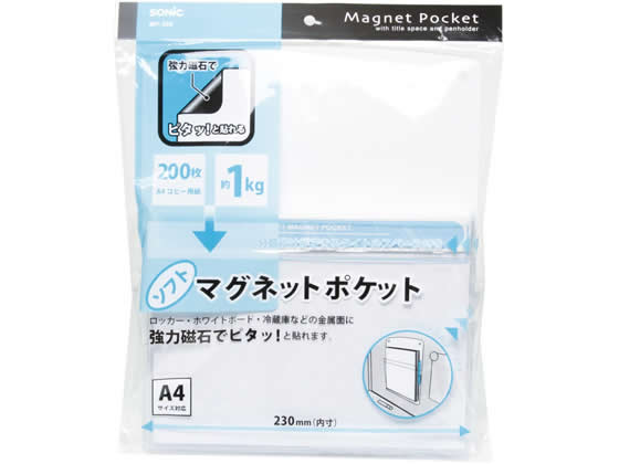 ソニック ソフトマグネットポケット A4 MP-358-W 1個(ご注文単位1個)【直送品】