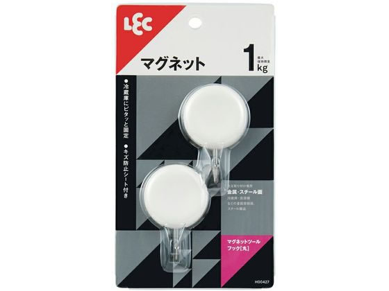 レック マグネットツールフック (丸) 2個入 ホワイト H00427 1パック(ご注文単位1パック)【直送品】