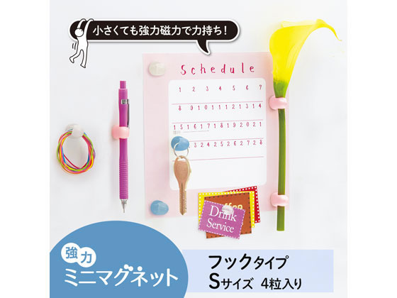 プラス 強力ミニマグネット フックタイプSサイズ 4個 80-392 CP-004MH 1パック(ご注文単位1パック)【直送品】