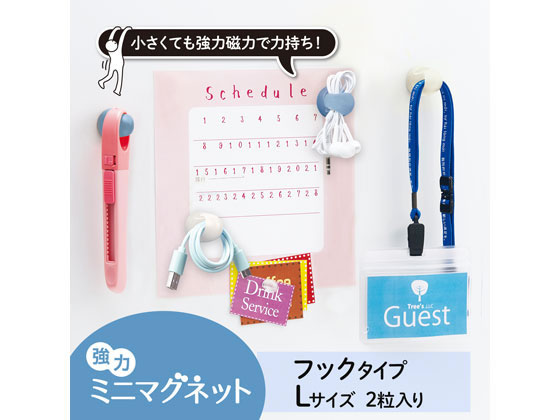 プラス 強力ミニマグネット フックタイプLサイズ 2個 80-393 CP-002MH 1パック(ご注文単位1パック)【直送品】