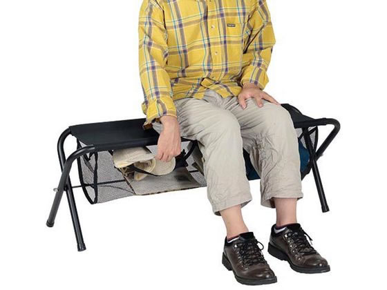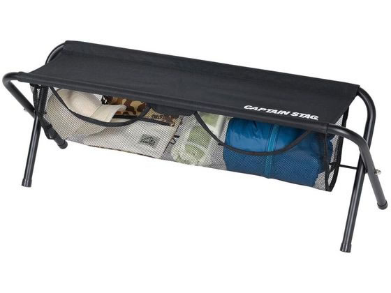 キャプテンスタッグ 大型収納付 フォールディングベンチ ブラック 1脚(ご注文単位1脚)【直送品】