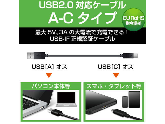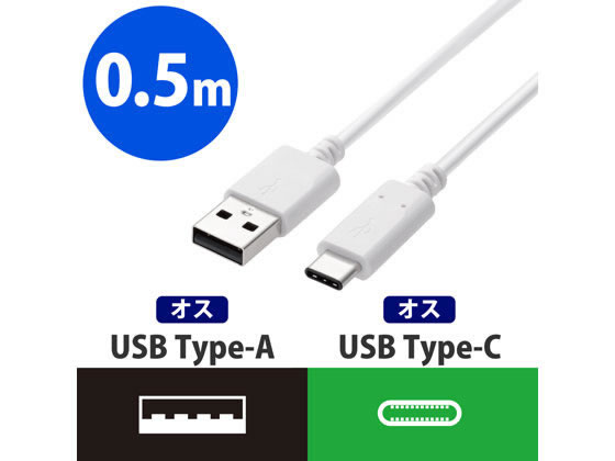 エレコム USB2.0ケーブル 認証品 A-C 50cm MPA-AC05NWH 1個(ご注文単位1個)【直送品】