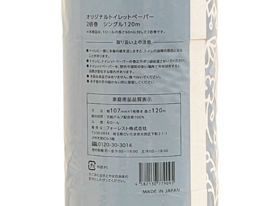 Forestway トイレットペーパー 2倍巻き 120m シングル 6ロール×8 1箱(ご注文単位1箱)【直送品】