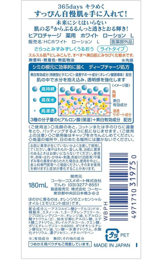 コーセーコスメポート ヒアロチャージ 薬用ホワイト ローションL ライトタイプ 180mL 1本(ご注文単位1本)【直送品】