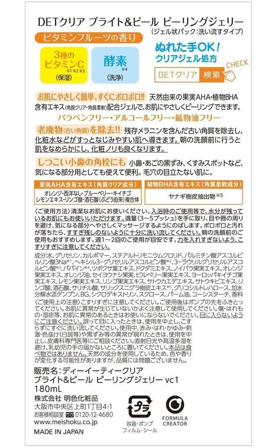 明色化粧品 DETクリアブライト&ピールピーリングジェリー ビタミンフルーツ 1本(ご注文単位1本)【直送品】