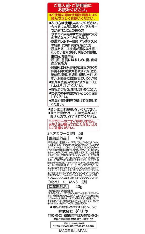 ダリヤ サロン ド プロ 無香料ヘアカラー 早染めクリーム 白髪用 5B 1個(ご注文単位1個)【直送品】