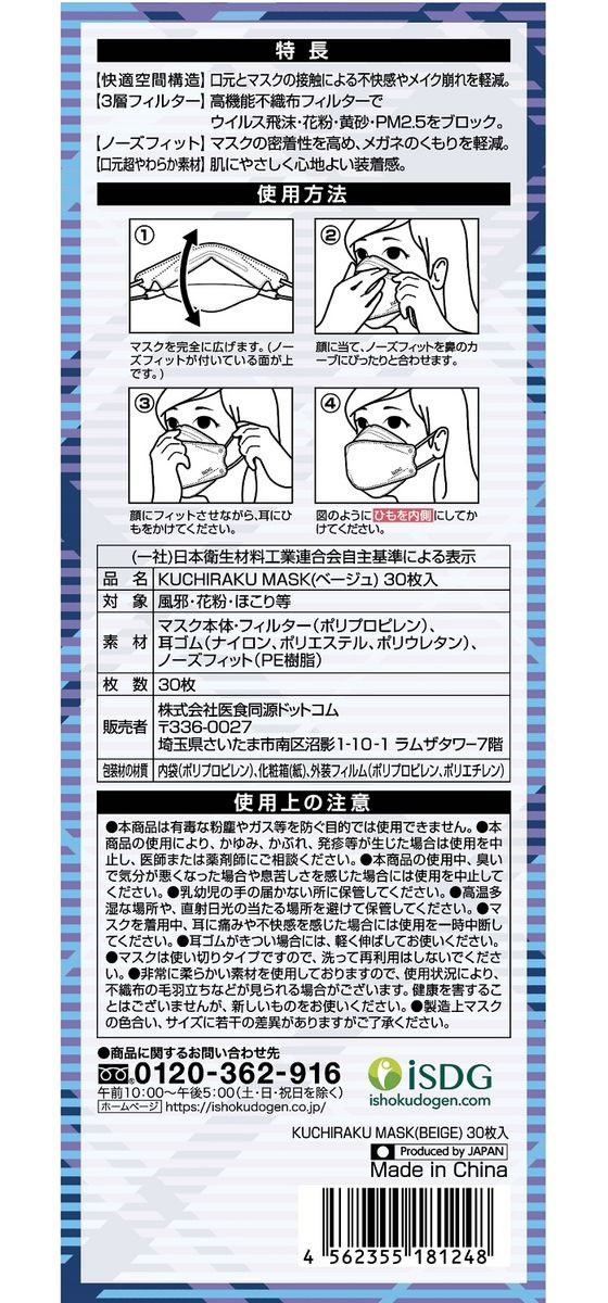 医食同源 KUCHIRAKU MASK ベージュ 30枚入 1個(ご注文単位1個)【直送品】