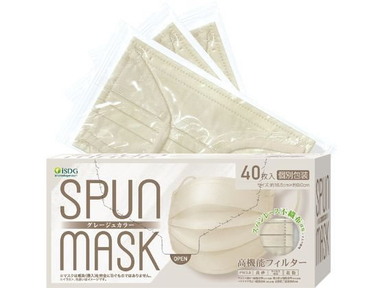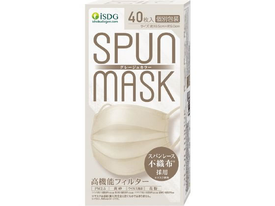 医食同源 スパンレース不織布カラーマスク グレージュ 40枚 1箱(ご注文単位1箱)【直送品】