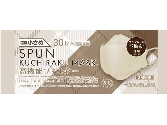 医食同源 SPUN KUCHIRAKU MASK 小 グレージュ 30枚 1箱(ご注文単位1箱)【直送品】
