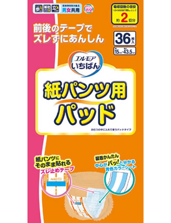 カミ商事 エルモアいちばん 紙パンツ用パッド 36枚 1パック(ご注文単位1パック)【直送品】
