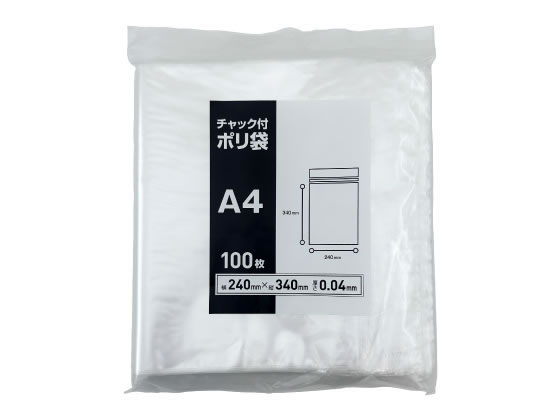 Forestway チャック袋 0.04厚 A4 340×240mm 100枚 1袋(ご注文単位1袋)【直送品】