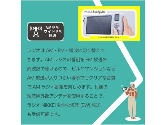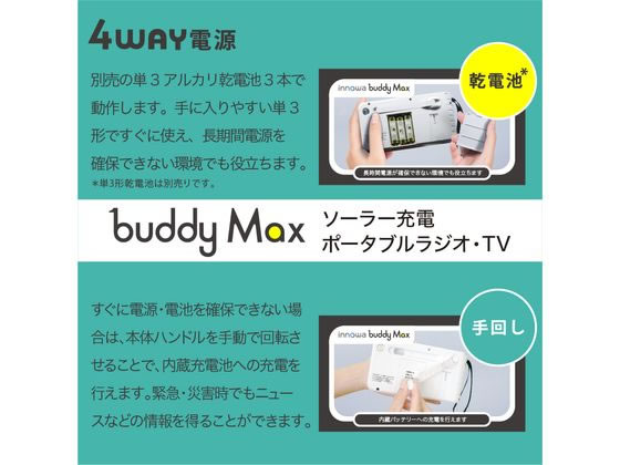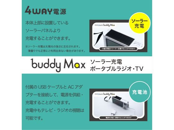 NHテクノロジー innowa ソーラー充電ポータブルラジオ・TV BM001 1台(ご注文単位1台)【直送品】