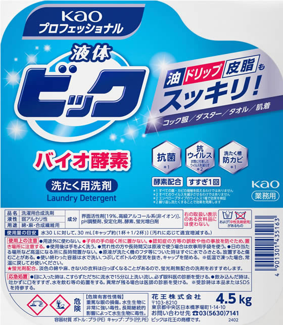 KAO 液体ビック バイオ酵素 4.5kg 業務用 1本(ご注文単位1本)【直送品】
