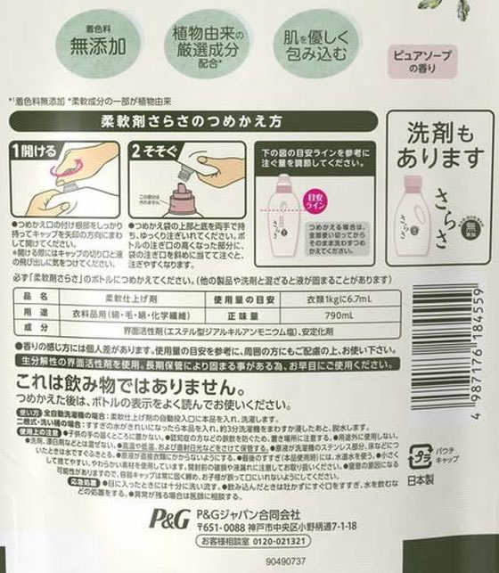 P&Gジャパン さらさ柔軟剤 つめかえ特大サイズ 790mL 1個(ご注文単位1個)【直送品】
