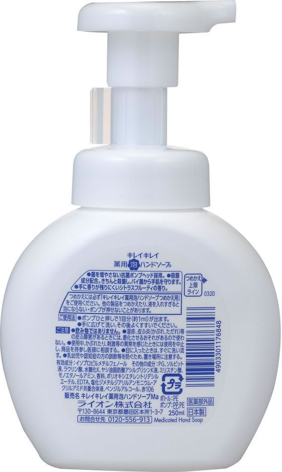 ライオン キレイキレイ 薬用泡ハンドソープ 本体 250mL 20個 1箱(ご注文単位1箱)【直送品】