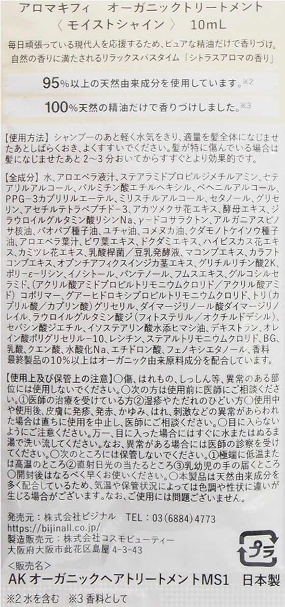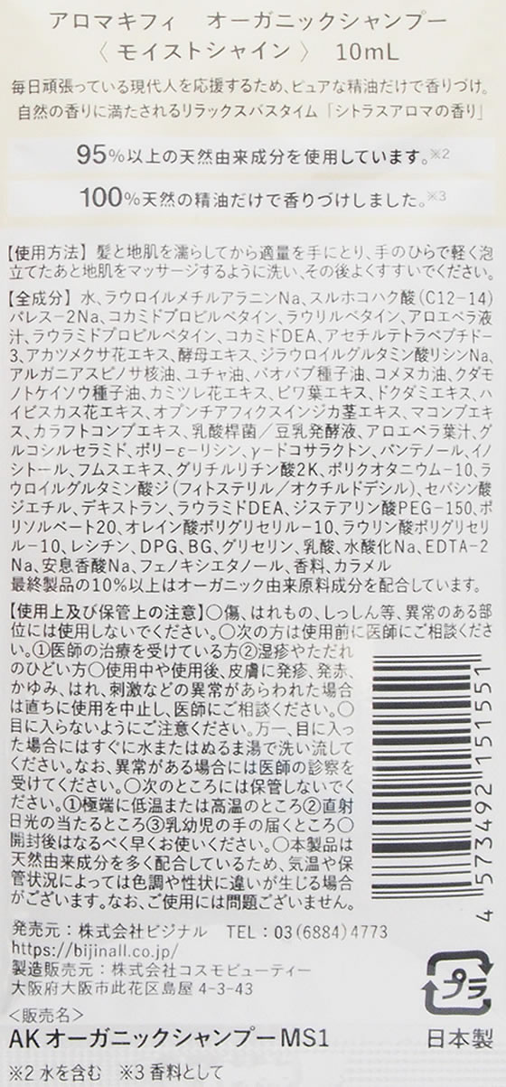 ビジナル アロマキフィ オーガニック モイストシャイン シャンプー&トリートメントトライアル 1セット(ご注文単位1セット)【直送品】
