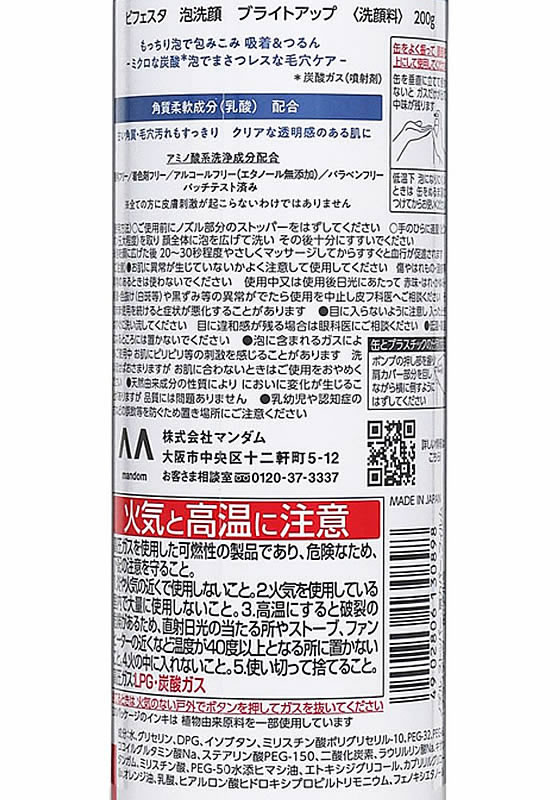 マンダム ビフェスタ 泡洗顔 ブライトアップ 200g 1個(ご注文単位1個)【直送品】