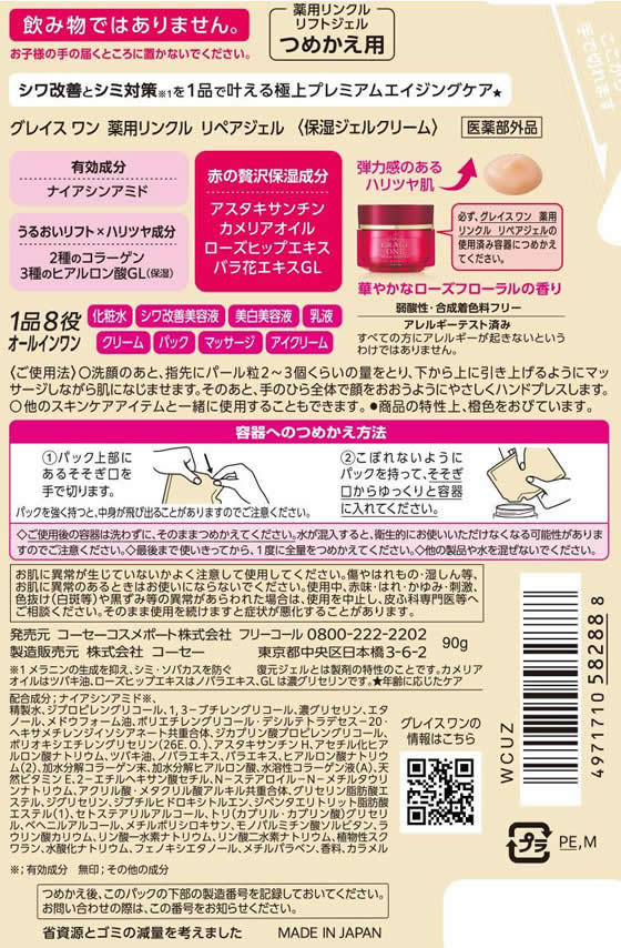 コーセーコスメポート グレイスワン 薬用リンクルリペアジェル つめかえ90g 1個(ご注文単位1個)【直送品】