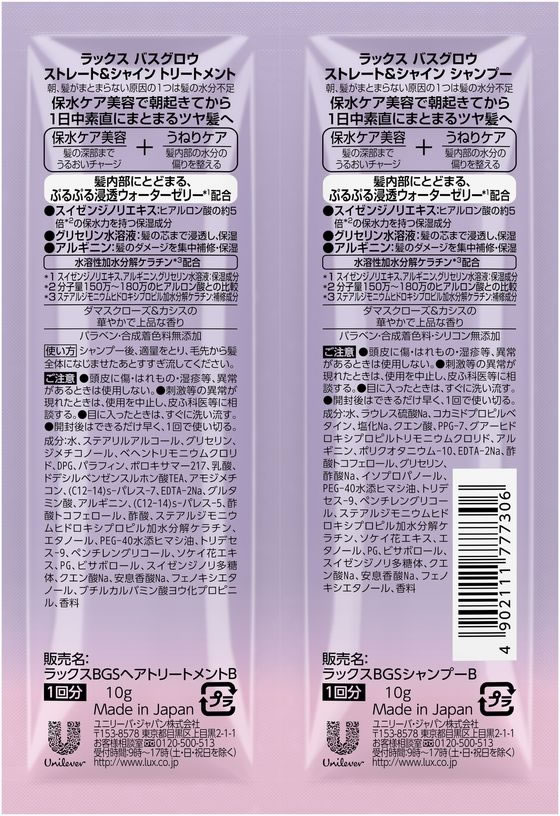 ユニリーバ ラックス バスグロウ ストレートアンドシャイン シャンプートリートメントセット 1個(ご注文単位1個)【直送品】