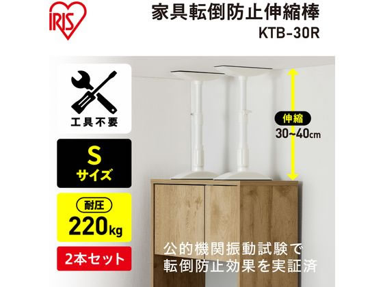 アイリスオーヤマ 家具転倒防止伸縮棒 S ホワイト 2本 KTB-30R 1セット(ご注文単位1セット)【直送品】