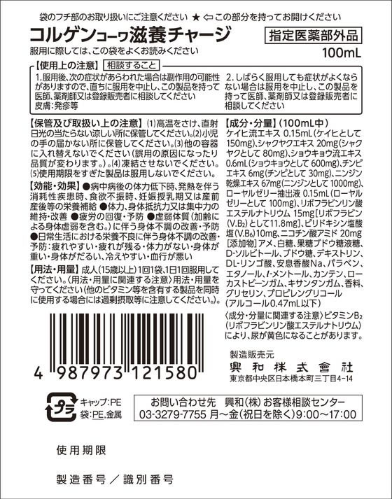 興和 コルゲンコーワ滋養チャージ 100mL×6袋 1箱(ご注文単位1箱)【直送品】