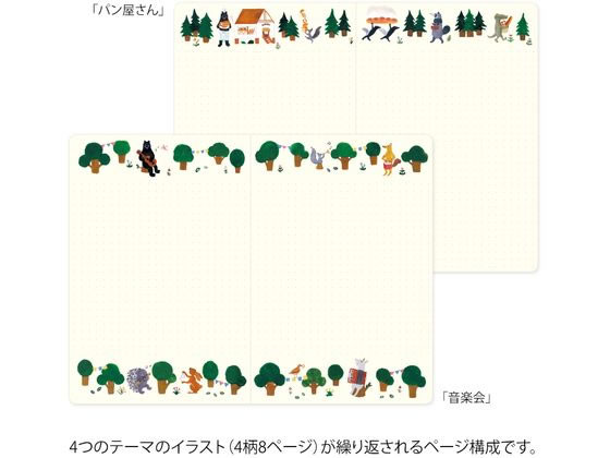 ミドリ(デザインフィル) ノート[B6]ゆるログ 森の動物柄 15352006 1冊(ご注文単位1冊)【直送品】