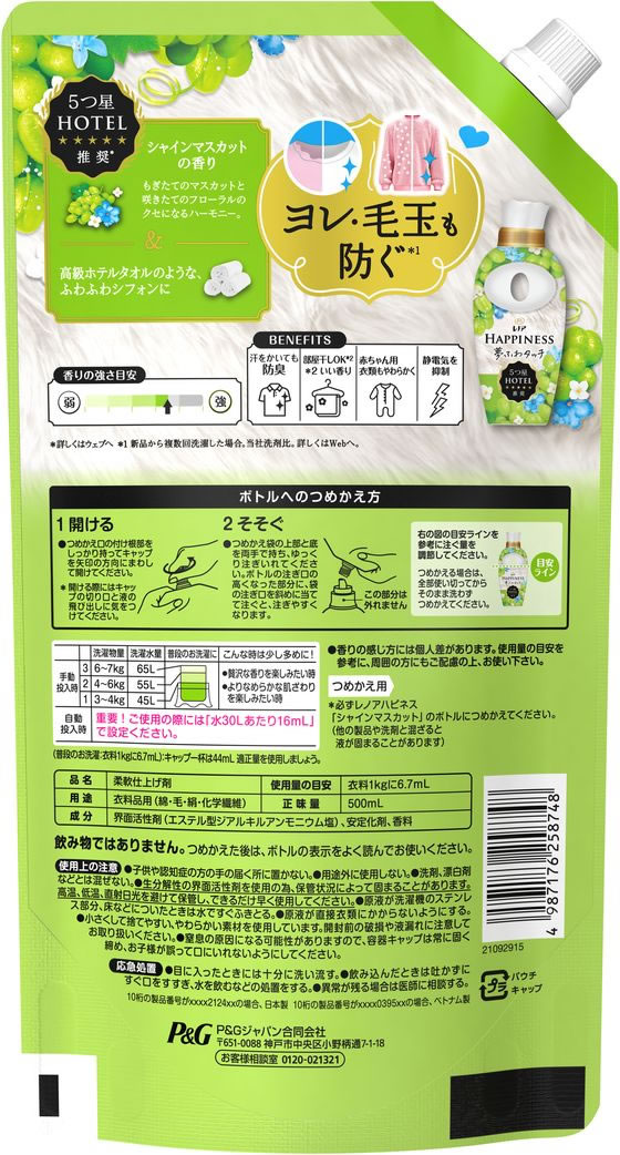 P&G レノア ハピネス 夢ふわタッチ シャインマスカット 詰替 500mL 1個(ご注文単位1個)【直送品】