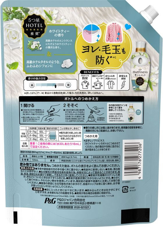 P&G レノア ハピネス 夢ふわタッチ ホワイトティー 詰替 720mL 1個(ご注文単位1個)【直送品】