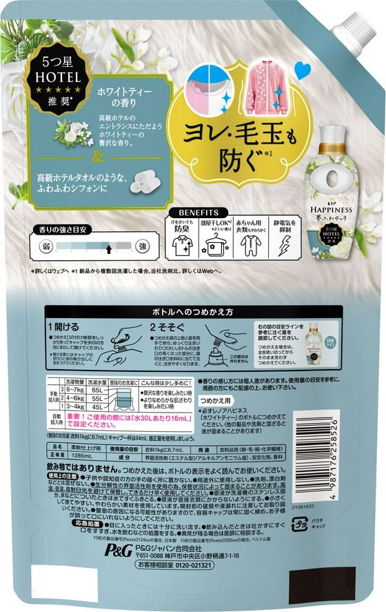 P&G レノア ハピネス 夢ふわタッチ ホワイトティー 詰替 1285mL 1個(ご注文単位1個)【直送品】