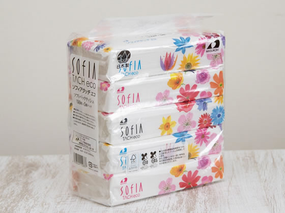 マスコー製紙 ソフィアタッチエコ ティッシュペーパー 150組 5個 1パック(ご注文単位1パック)【直送品】