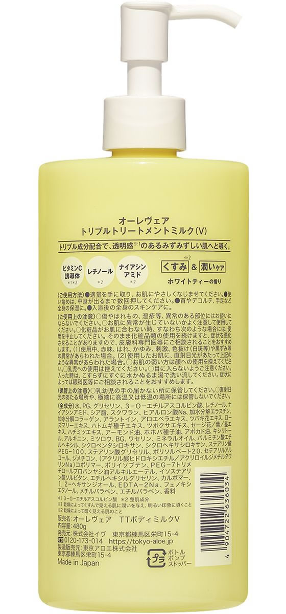 東京アロエ オーレヴェアトリプルトリートメントミルク ホワイトティーの香り 480g 1本(ご注文単位1本)【直送品】