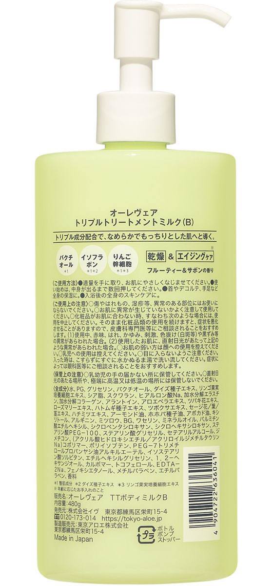 東京アロエ オーレヴェアトリプルトリートメントミルク フルーティーサ&サボン 480g 1本(ご注文単位1本)【直送品】