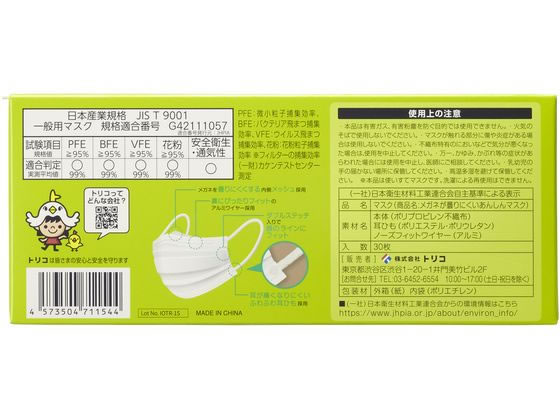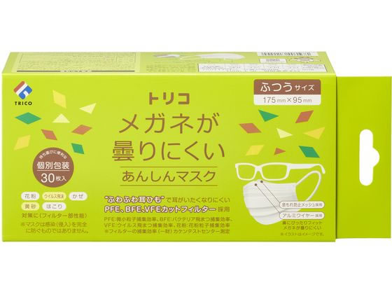 TORICO メガネ曇りにくいあんしんマスク ふつう 30枚 1箱(ご注文単位1箱)【直送品】