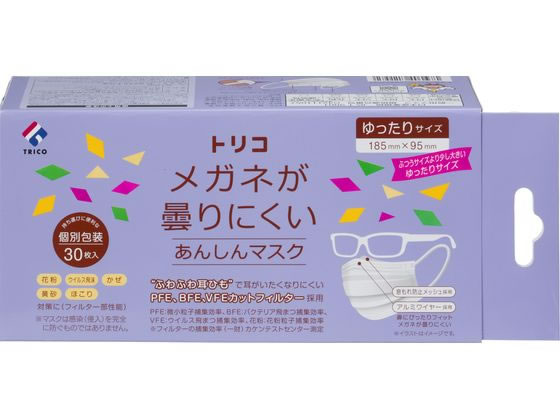 TORICO メガネ曇りにくいあんしんマスク ゆったり 30枚 1箱(ご注文単位1箱)【直送品】