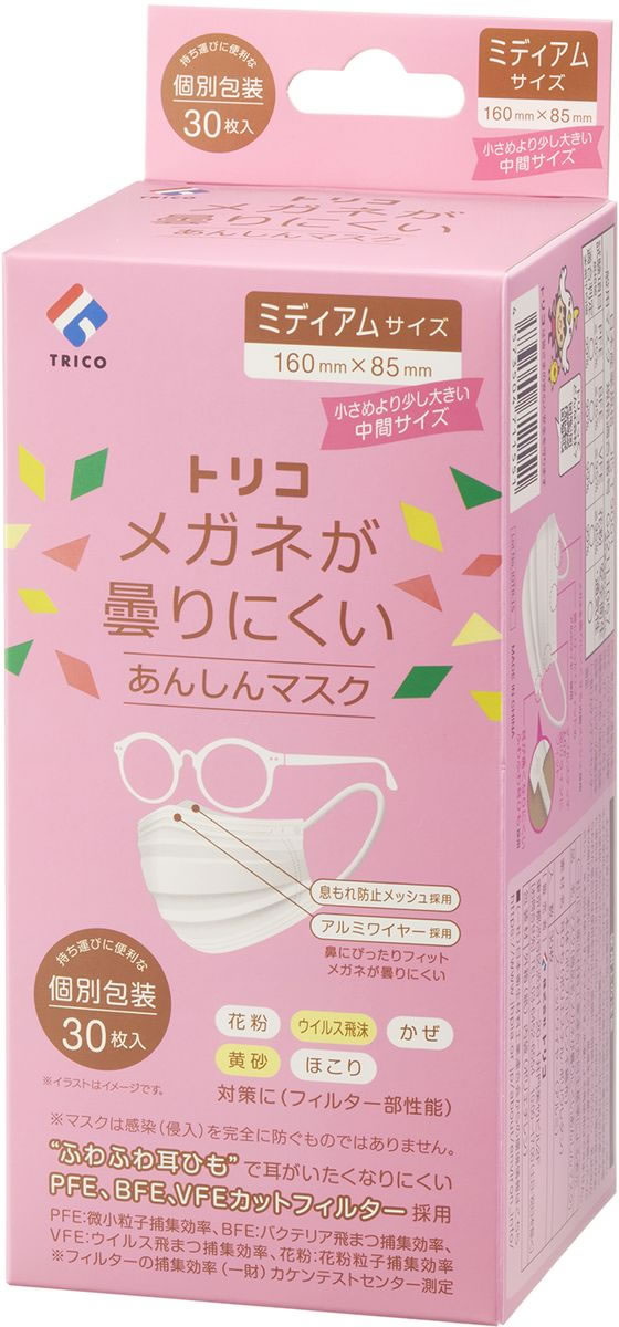 TORICO メガネ曇りにくいあんしんマスク M 30枚 1箱(ご注文単位1箱)【直送品】