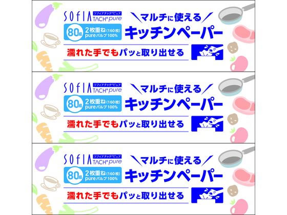 マスコー製紙 ソフィアタッチピュア キッチンペーパー 80組3パック 1パック(ご注文単位1パック)【直送品】